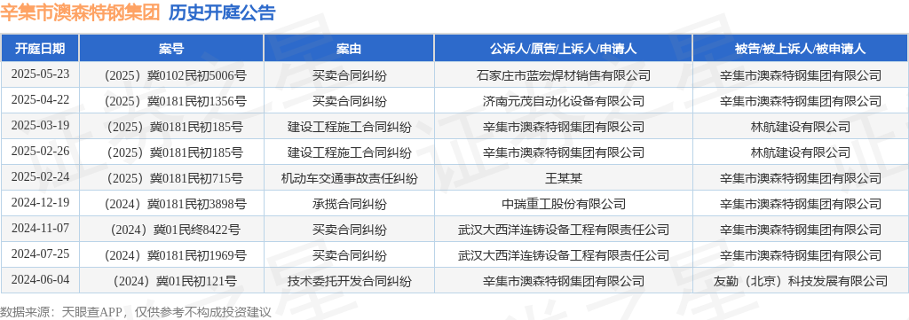 本站消息火牛配资,根据天眼查APP显示,近日公布了一则辛集市澳森特钢集团有限公司作为被告/被上诉人的开庭公告火牛配资,详细内容如下: