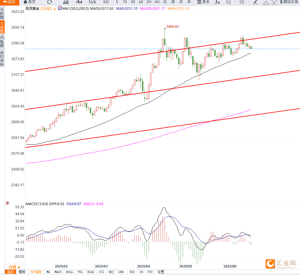技术上金价仍未跌破上升通道,意味着中长期多头格局尚未破坏。若中东局势进一步升级或贸易担忧情绪加重,黄金有望出现反弹修复行情。