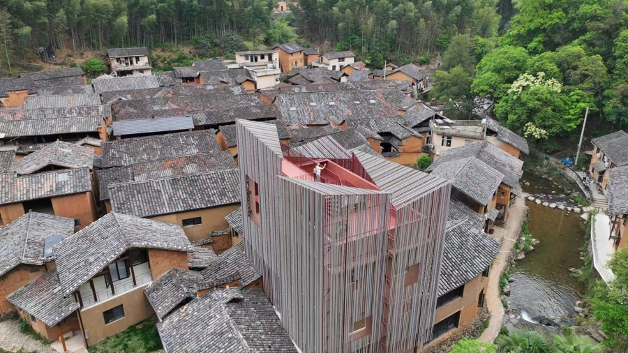 当地邀请来自全球的艺术家驻村创作,将农耕元素、山水意境融入公共艺术装置与民居改造中。村中央红白相间的织美术馆已成为当地最先锋的艺术地标,老宅的院墙则化作展示农耕故事的彩绘长廊,艺术与乡土肌理深度融合,让松庄村既保留了“土味”,又增添了“品位”,成为乡村美学实践的典范。